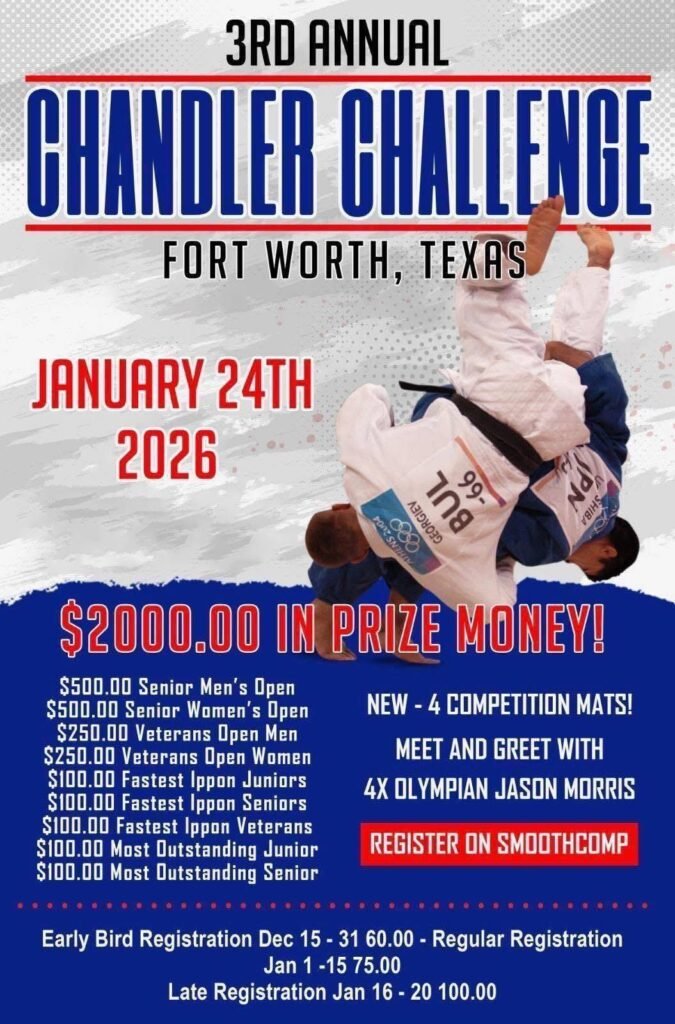 NOTE: CHANDLER CHALLENGE HAS BEEN PUSHED BACK ONE WEEK DUE TO WEATHER – RESCHEDULED TO 1/31/26 Texas has a number of judo competitions to choose from, with one tournament scheduled almost every month. Coming up first is the Chandler Challenge on January 24th 31st in Crowley, featuring the competition debut of Waco Judo, with Curtis […]